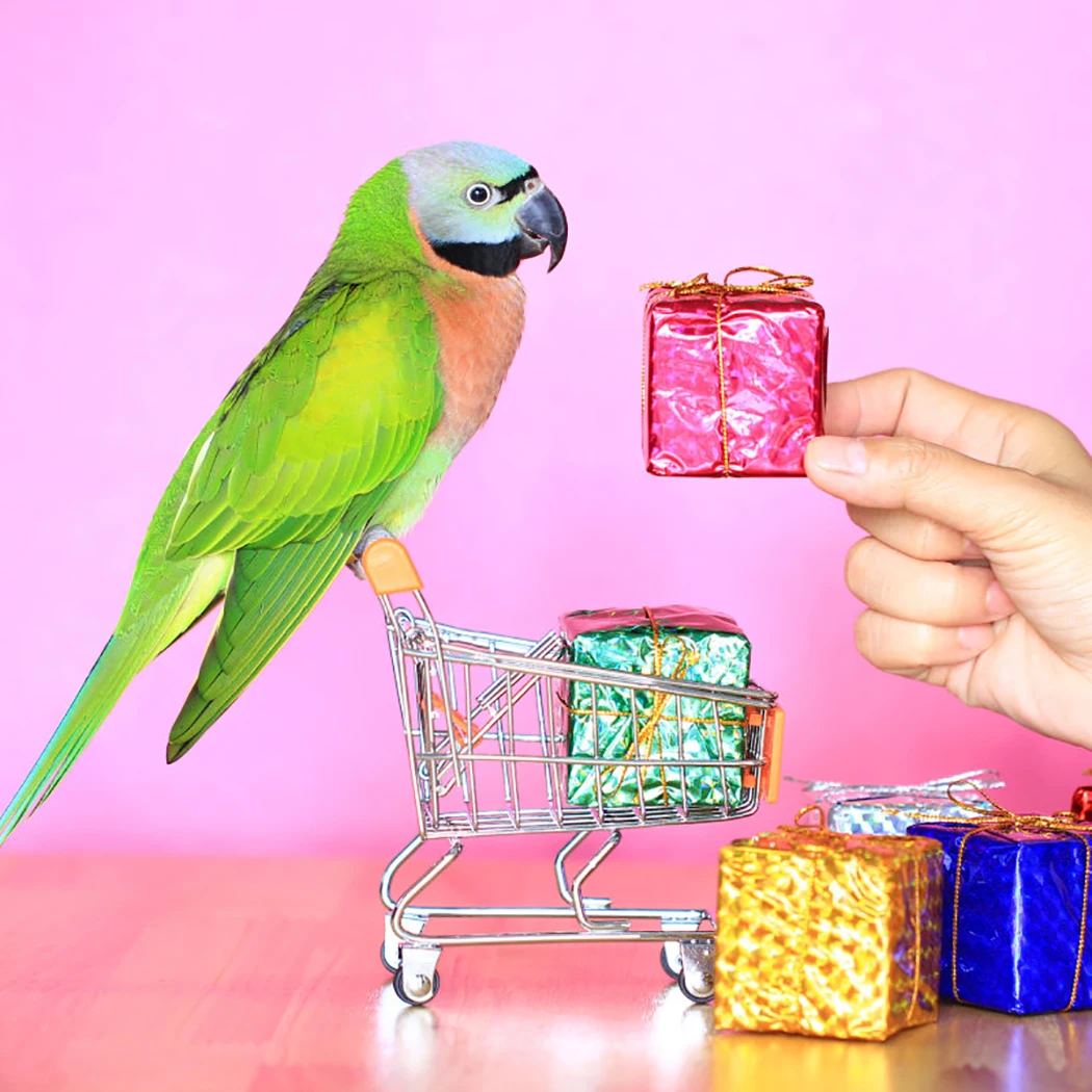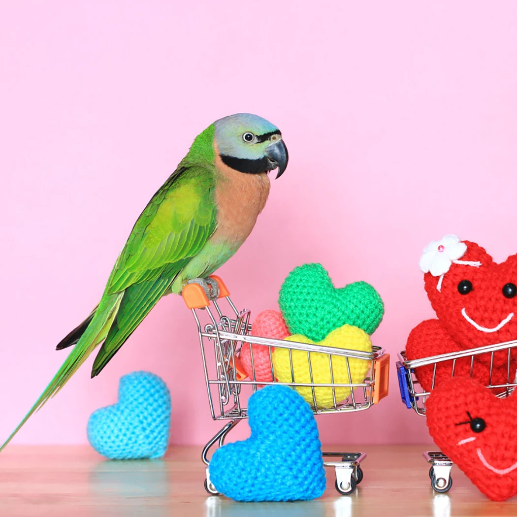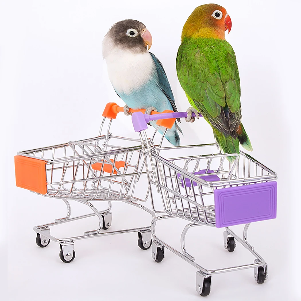 New Colorful Funny Mini Supermarket Shopping Cart Trolley Pet Bird Parrot Hamster Toy Mini Shopping Cart Bird Shopping Cart