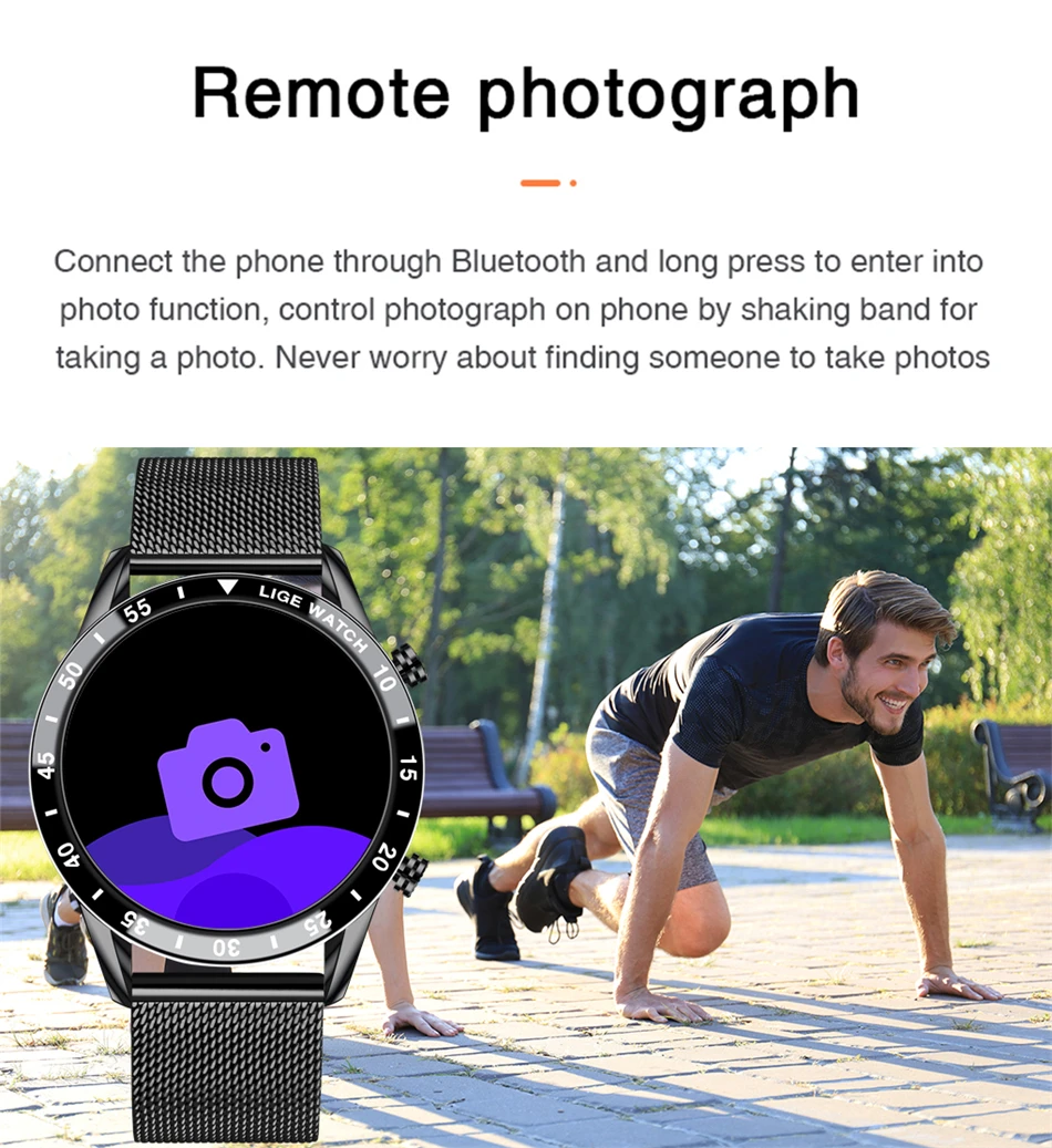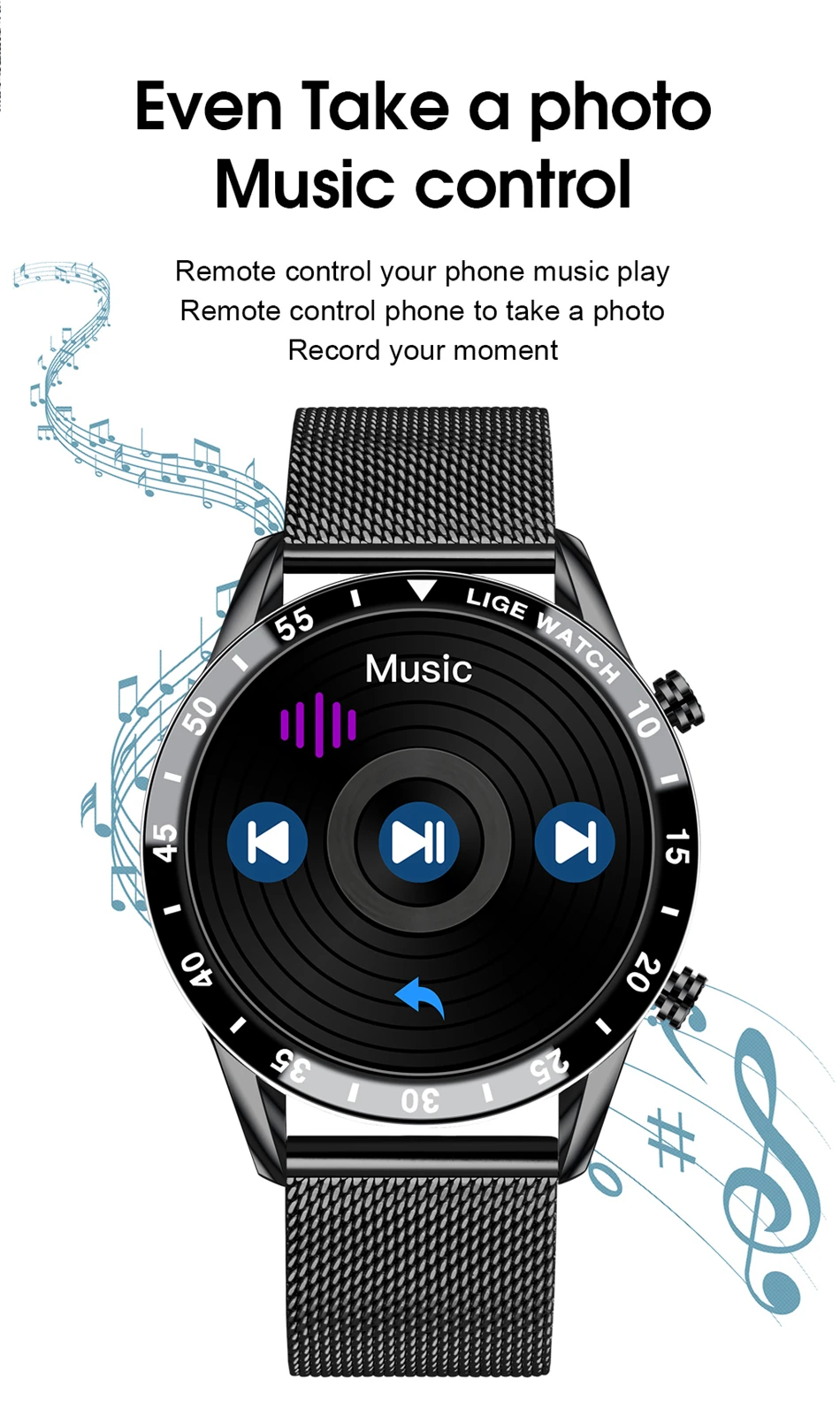 Receive/Reject phone calls/ Dial phone call,Heart rate monitoring,Blood/Blood oxygen pressure monitoring,Sleep monitoring,Sedentary reminder,ports pedometer/calorie consumption/track record/exercise time,Call reminder and display,Message is pushed and displayed,Remote control camera,Automatically heart rate measurement,Multi-Sport,measurement,Clock reminder,Alarm reminder,5 kinds of dials default. APP customized watch faces are optional.