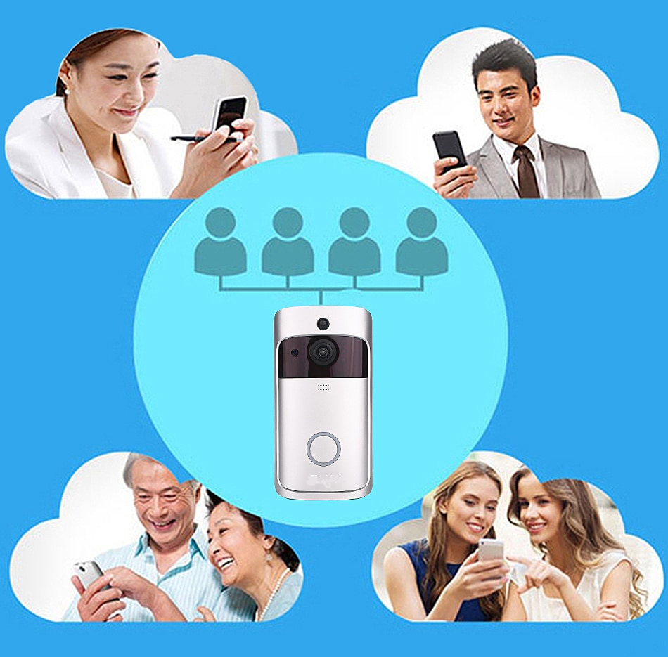 4 mobile phones could monitor and share the image of doorbell at the same time, but only one user could talk on the intercom directly. Compatible with iOS and Android operating systems.
